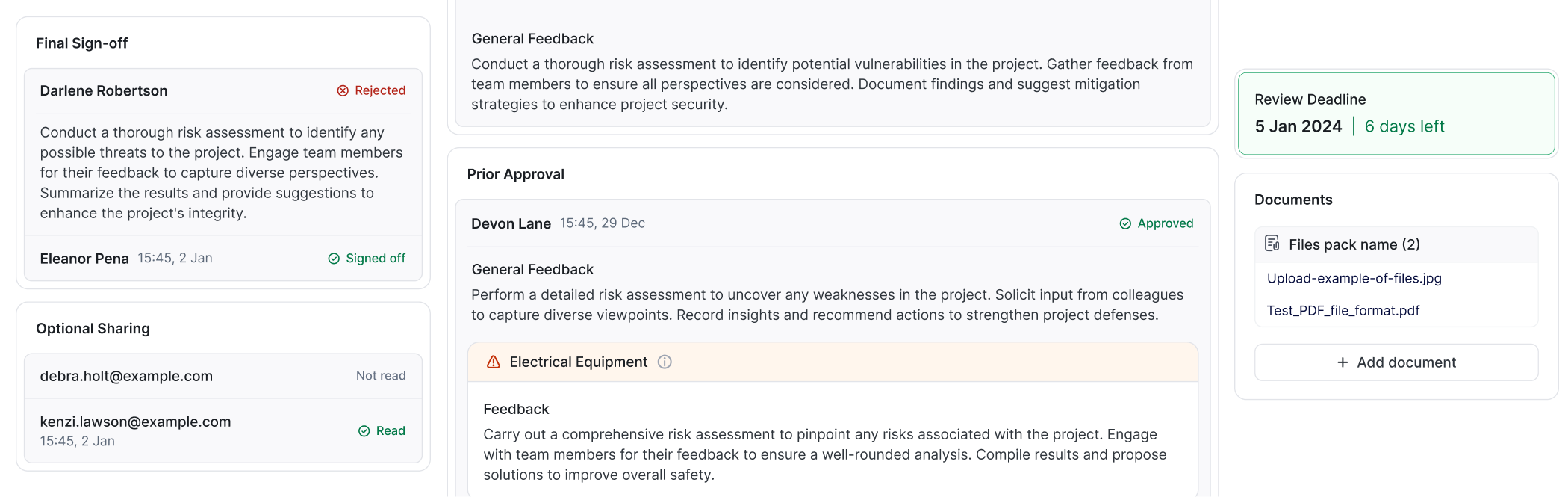 Реалізацію проєкту було поділено на кілька етапів, що дозволило оптимізувати процес, запустити сервіс для внутрішньої команди клієнта та водночас працювати над наступними кроками, тестуючи першу частину. Перший етап і основу системи формує робота з персоналом, багаторівневою структурою організацій та документами оцінки ризиків (Risk Assessment) — ключовим інструментом для ідентифікації, аналізу й управління ризиками, що впливають на безпеку співробітників. Наступний етап — це робота над формами, а саме над конструктором форм, який дозволяє менеджерам і команді створювати форми з повним контролем над логікою полів та умовами їх відображення (conditionality). Форми можуть бути універсальними або налаштованими під окремих клієнтів і типи виробництв. Третім і заключним етапом була робота над документацією та оптимізацією всіх попередніх етапів.