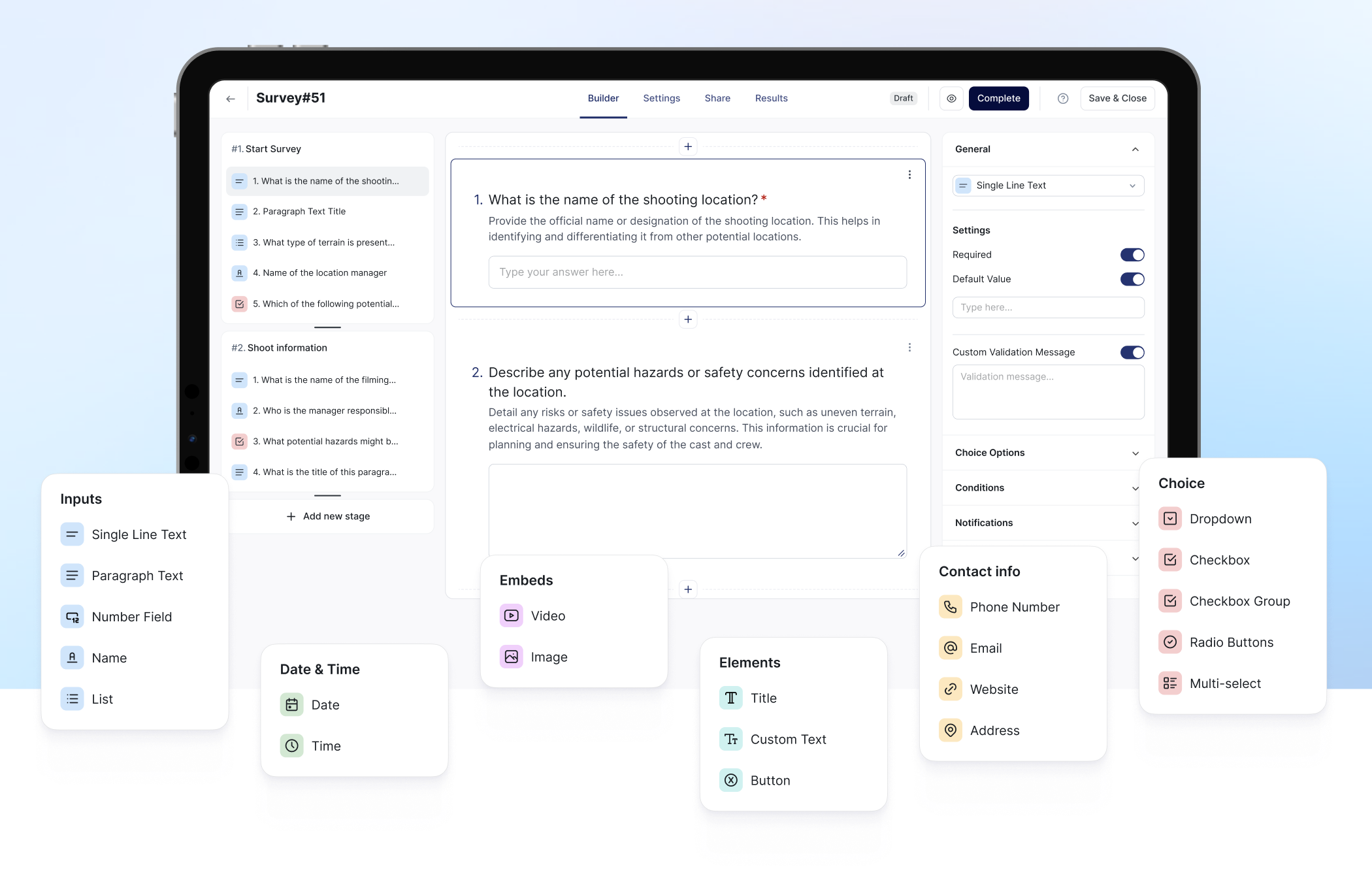 Conditionality в safetyflow дозволяє робити ваші форми дійсно інтерактивними та динамічними. Завдяки цій функції окремі поля, блоки та питання показуються або приховуються автоматично, залежно від того, які відповіді дав користувач у формі.