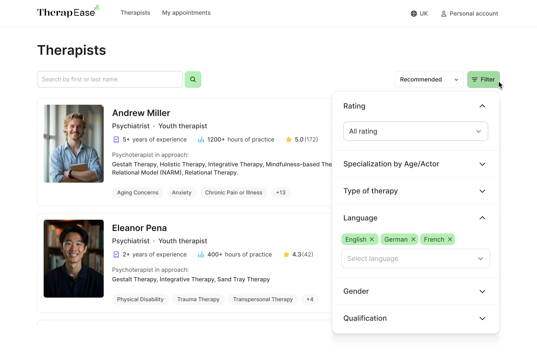 Процес реєстрації терапевтів